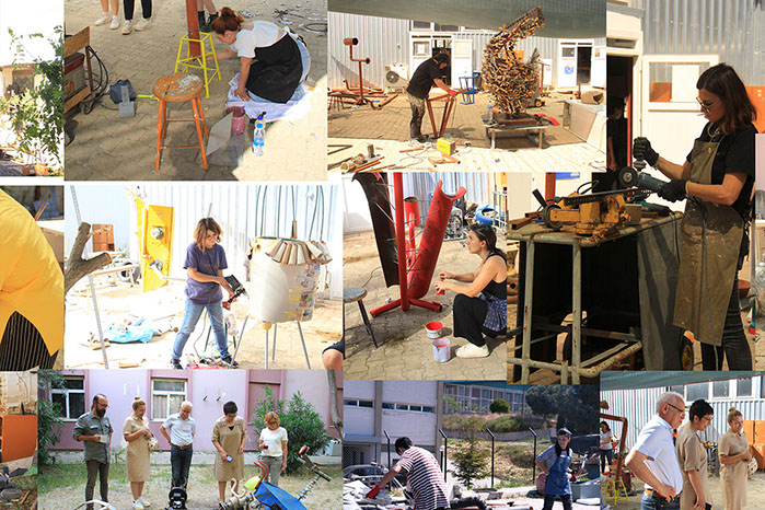 All students were informed about what they can do to transform waste materials into a vital-artistic space through eight seminars with four sessions held every week during the design process and sculpture workshop.